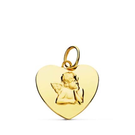 Medalla Bebé 14 mm Ángel Burlón en Oro Amarillo 18K con Corazón