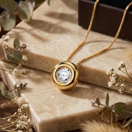 Esta gargantilla de alta joyería destaca por la combinación del oro amarillo de 18 kilates con un radiante diamante de laboratorio de 0,325 ct. y una calidad excepcional G-VS2. El diamante, de 5 mm, se encuentra enmarcado en un elegante chatón de 8 mm que potencia su luminosidad, suspendido de una cadena de 42 cm. Esta joya ha sido diseñada para ofrecer una sofisticación atemporal, ideal para completar cualquier estilo con un toque de distinción.