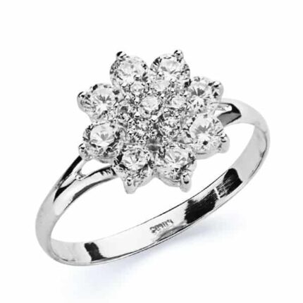 Anillo 14 x 11 mm Oro Blanco 18 Quilates Cuajo Circonitas
