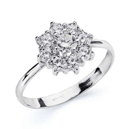 Anillo 13 x 10 mm Oro Blanco 18 Quilates Cuajo Circonitas