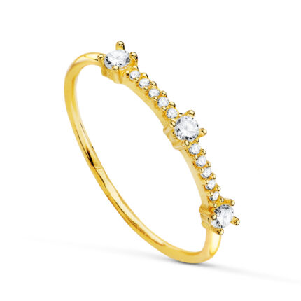 Anillo 10mm Oro Amarillo 18K Aro Curvo Abierto y Circonitas