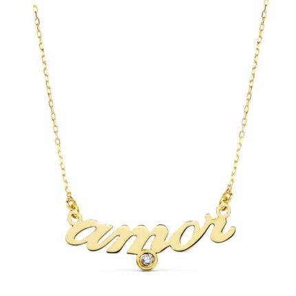Radiante por su Circonita y maravillosa por su diseño. Aquí te mostramos esta gargantilla elaborada en oro amarillo de 18 quilates y acompañada por el letrero "Amor". Si buscas una joya con la que sorprender, esta es la tuya. Puedes encontrarla en nuestras tiendas de Málaga y Melilla, o encargarla online y te la enviamos a casa.