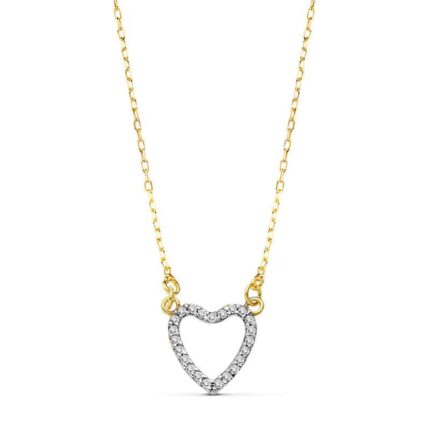 Gargantilla Corazón 10 x 10 mm Oro Bicolor 18 Quilates Cadena y Circonitas