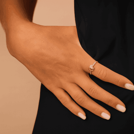 Anillo en Oro 18K Bicolor con Abertura Aro y Circonitas