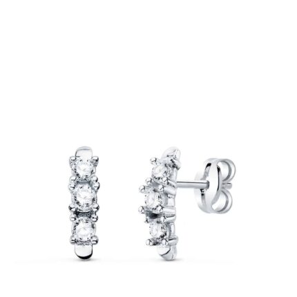 Preciosa pareja de pendientes realizados en Oro blanco de 18 quilates y una excelente terminación brillo. Diseño moderno y minimalista, formado por una pieza alargada que incorpora varias Circonitas engastadas sobre cuatro garras. Un modelo perfecto y cómodo para llevar en tu día a día.