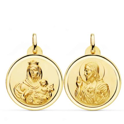 Medalla Escapulario 24 mm Virgen del Carmen y Corazón de Jesús Oro Amarillo 18K Tallas