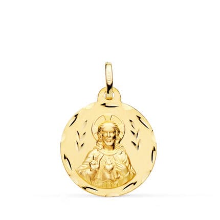 Medalla Sagrado Corazón de Jesús 20 mm Oro Amarillo 18K con Tallado