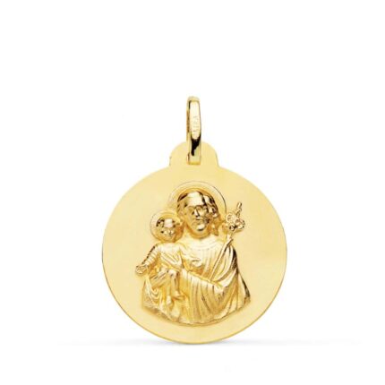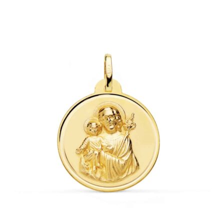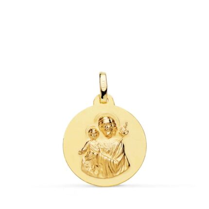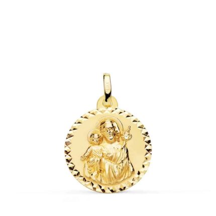 En Torres Joyeros no podía faltar la medalla de oro de José de Nazaret, por ello quisimos fabricarlas, en tamaños de 18 a 22 mm y con detalles en sus bordes, como biseles, tallas o tallas cruzadas. Como podrás ver en cada una de las medallas de oro, la escena que aparece es la de San José con el niño Jesús sobre sus piernas.