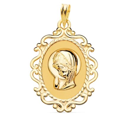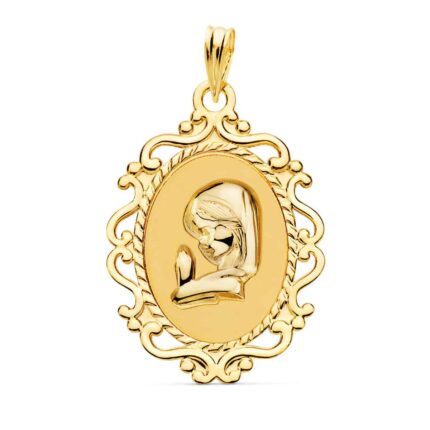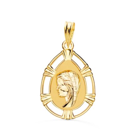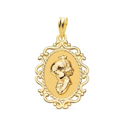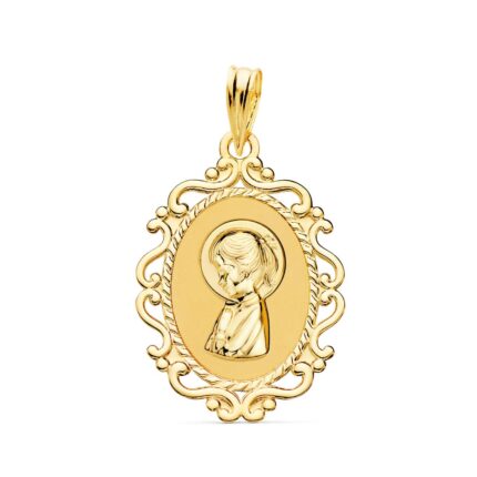Medalla Comunión Virgen Niña 23 x 15 mm en Oro Amarillo 18 Quilates Calado
