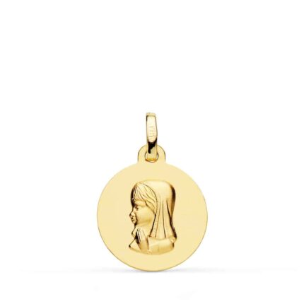 Medalla Comunión Virgen Niña Rezando 16 mm en Oro Amarillo 18 Quilates Tallas