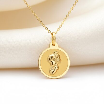 Esta medalla de oro de 18 kilates presenta una iconografía clásica de una Niña en actitud de oración, capturada en un delicado perfil en relieve. Con un tamaño de 18 mm, esta medalla luce una terminación lisa que aporta una luminosidad atemporal a la joya. Es una elección ideal como regalo de nacimiento, bautizo o primera comunión, diseñada para ser un recuerdo espiritual que perdure en el tiempo con elegancia y sencillez. Puedes encontrarlo en nuestras tiendas de Málaga, o si lo prefieres, encargarlo online y te lo enviamos a casa.
