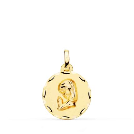Medalla Virgen María Comunión 18 mm en Oro Amarillo 18 Quilates con Bisel