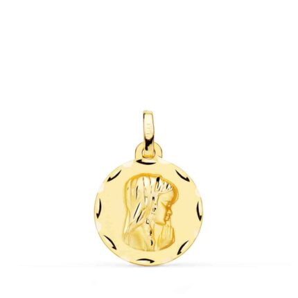 Medalla Virgen Niña 16 mm Oro Amarillo 18 Quilates Talla Cruzada