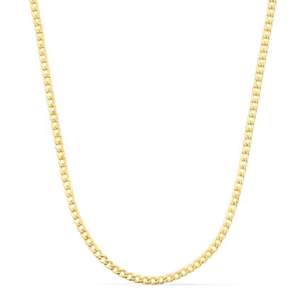 Cadena Barbada Hueca de Oro Amarillo 18K con 2 mm y 50 cm de Largo