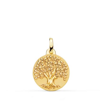 Colgante Árbol de la Vida 16 mm Oro Amarillo 18K Medalla Mate Brillo