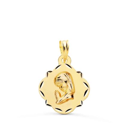 Estupenda y original medalla tipo pandereta de 19 x 16 mm realizada en Oro amarillo de 18 quilates, con original forma y diseño a relieve de la Virgen niña, con leves tallas en su centro, dándole un toque diferente. Una medalla pensada para niña, que es ideal para llevar en la primera comunión. Puedes encontrarla en nuestras tiendas de Málaga, o si lo prefieres, encargarla online y te la enviamos a casa.