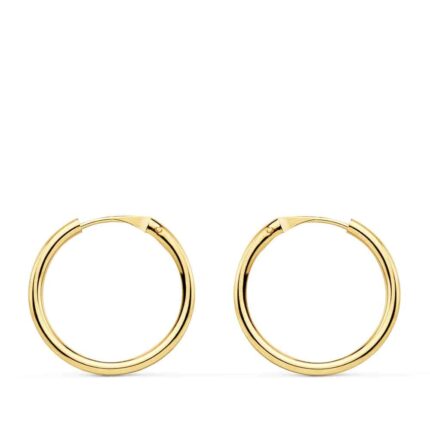 Los pendientes de aro son un cásico que no deben faltar en tu joyero. Una joya muy socorrida y fácil de poner. Esta pareja de pendientes con 15 x 1,2 mm tipo tubo, está realizada en Oro amarillo de 18 quilates y son perfectos para ti. Ideales para niña pequeña, o llevar en segundos agujeros, tipo piercing, en mujer adulta.