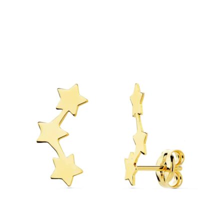 Los pendientes tipo trepadores, dan un toque especial a nuestra oreja. Modernos y realizados en Oro amarillo de 18 quilates, que van acompañados por animadas estrellas que te harán brillar. Con una medida de 13 x 4 mm y seguros cierres a presión.