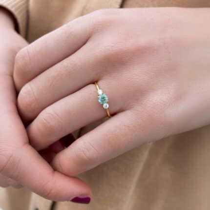 Este anillo de oro de 18 kilates destaca por su terminación en brillo y su vibrante combinación de piedras. La joya incorpora en su centro una aguamarina ice de 5 mm talla brillante, la cual se encuentra realzada por dos circonitas talla brillante engastadas en garras a cada uno de sus laterales. Se trata de una joya diseñada para aportar luz y un toque de color distintivo, siendo perfecta tanto para el día a día como para ocasiones especiales.