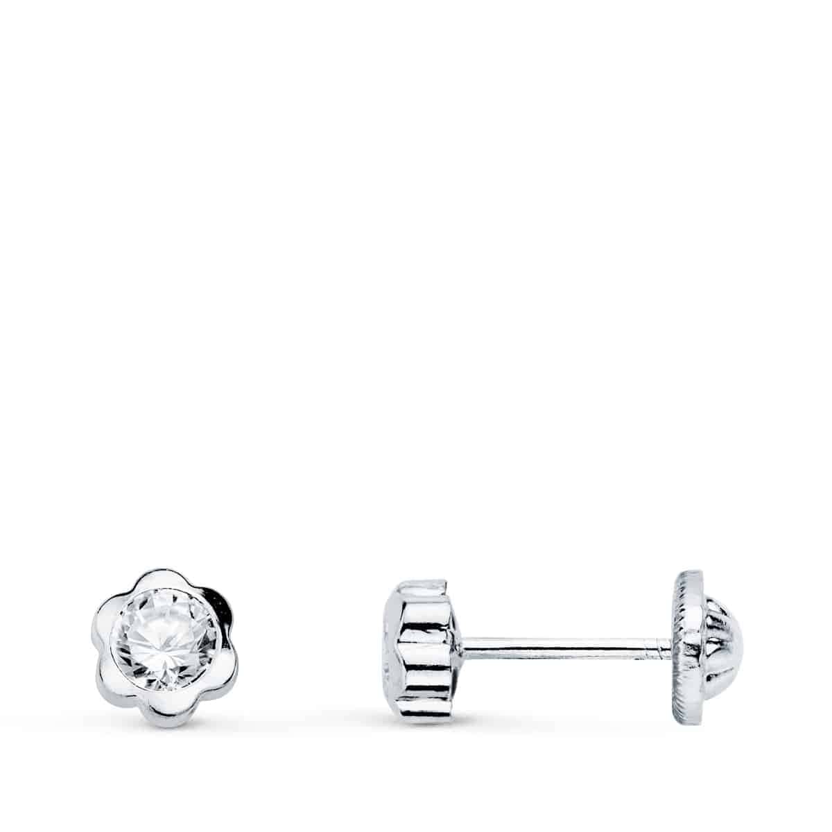 Pendientes Bebé 5mm Oro Blanco 18K Flor Circonita
