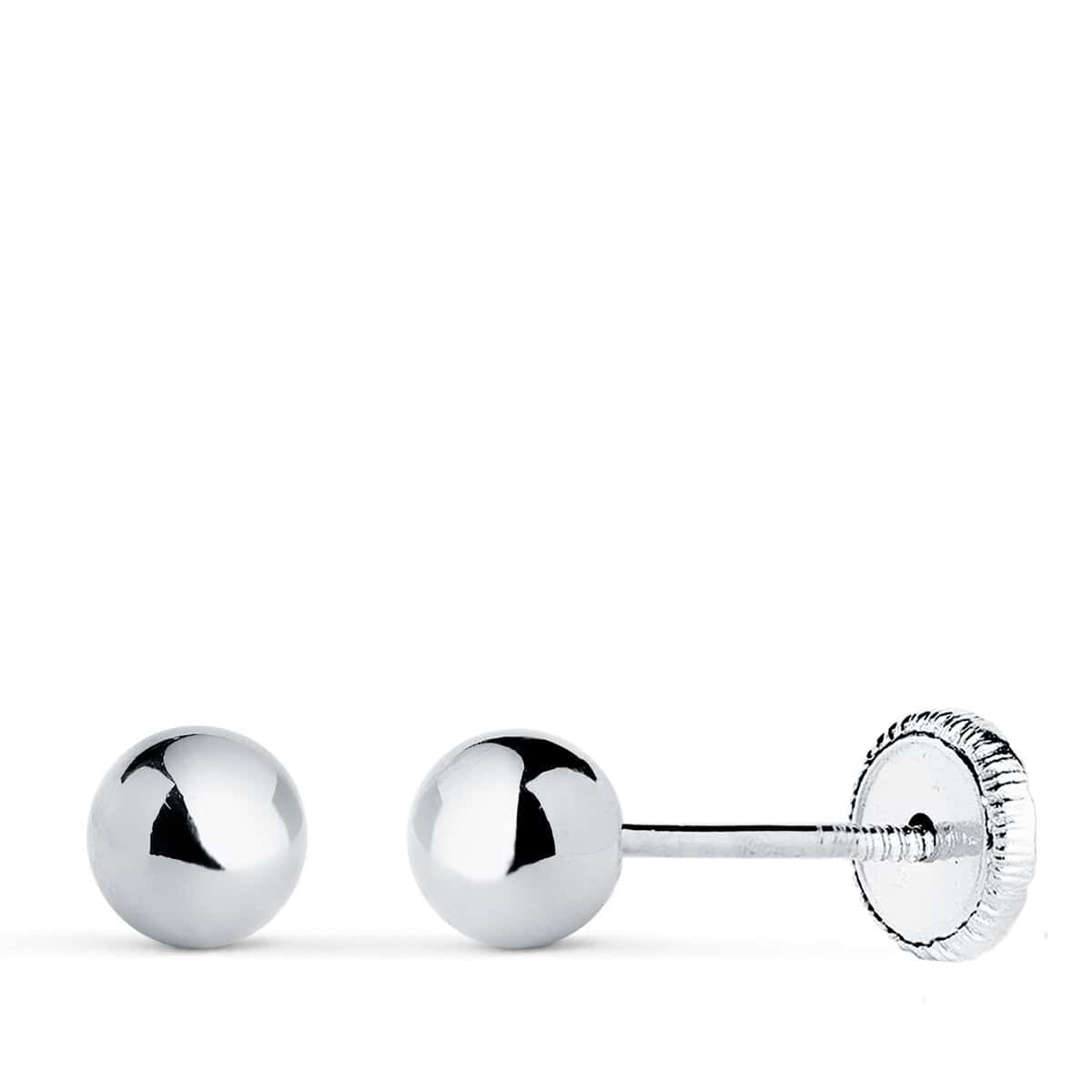 Pendientes Bola 5 mm en Oro Blanco 18K Presión