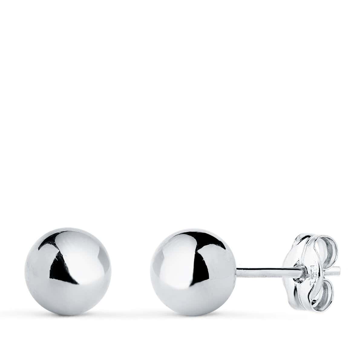 Pendientes Bola 6 mm en Oro Blanco 18K Presión