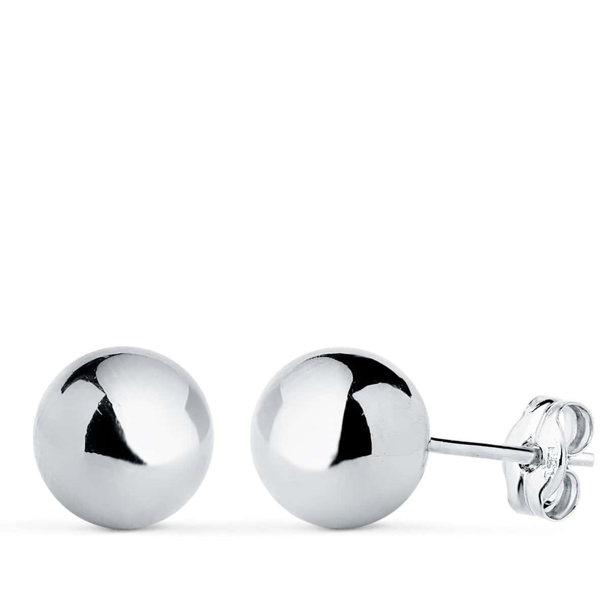 Pendientes Bola 8 mm en Oro Blanco 18K Presión