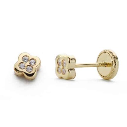 Pendientes Bebé 4 mm en Oro Amarillo de 18 Quilates Flor con Circonitas