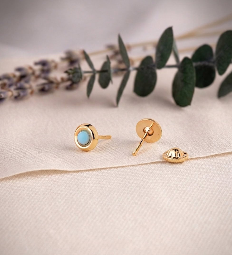 Pendientes Redondos con Turquesas 5 mm de Oro Amarillo 18K Tuerca