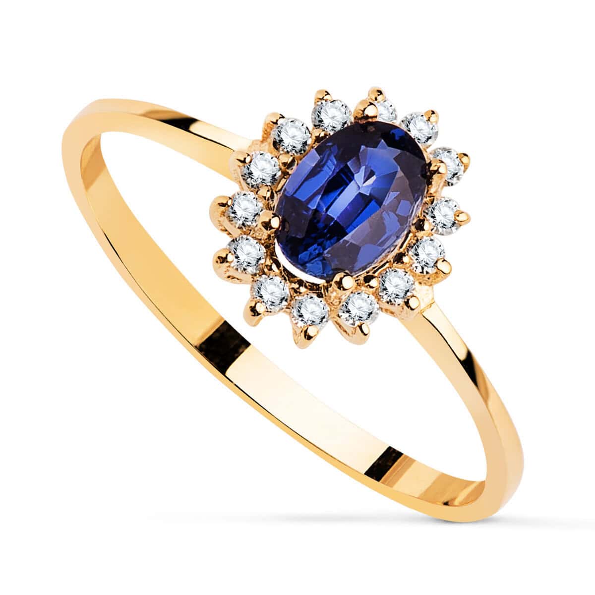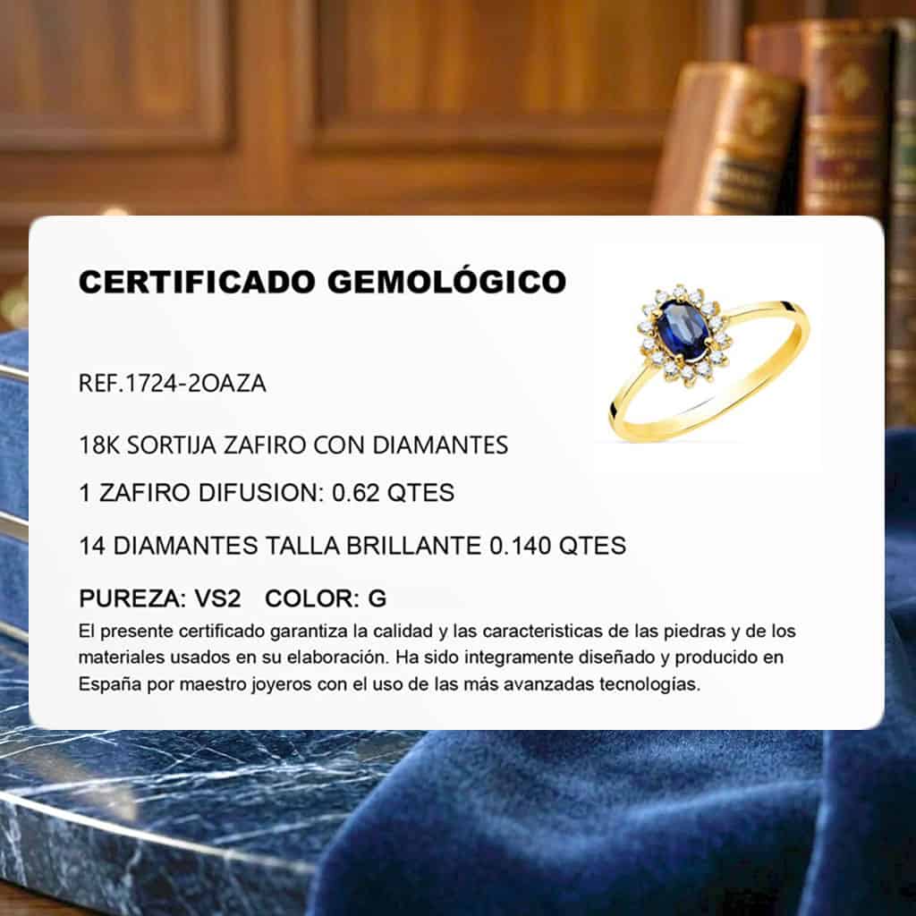 Anillo Compromiso Oro Amarillo 18K Diamantes y Zafiro 0,62Q