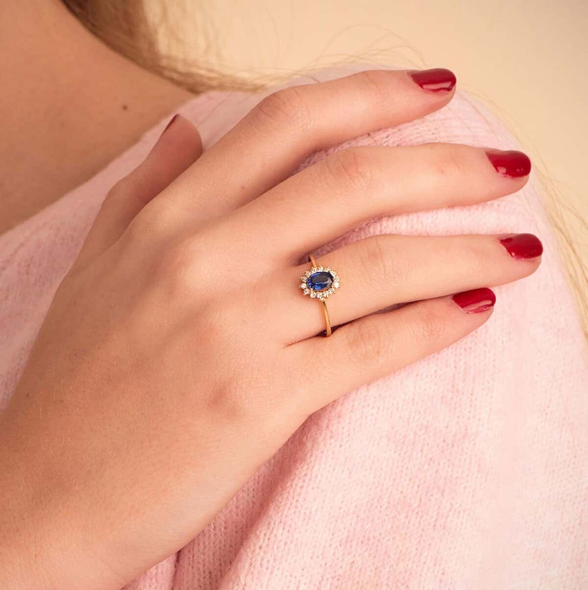 Este anillo de compromiso combina la elegancia atemporal del oro de ley con la sofisticación de las piedras preciosas. Su diseño destaca por el intenso azul del zafiro y el brillo excepcional de los diamantes, convirtiéndola en una pieza de alta joyería ideal para un momento inolvidable.