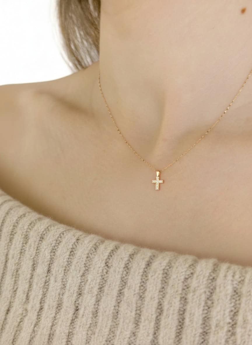 Cruz realizada en Oro amarillo de 18 kilates con unas medidas de 13,5 x 10 mm. Este diseño destaca por el elegante contraste de sus circonitas blancas engastadas, ofreciendo un estilo minimalista y sofisticado.