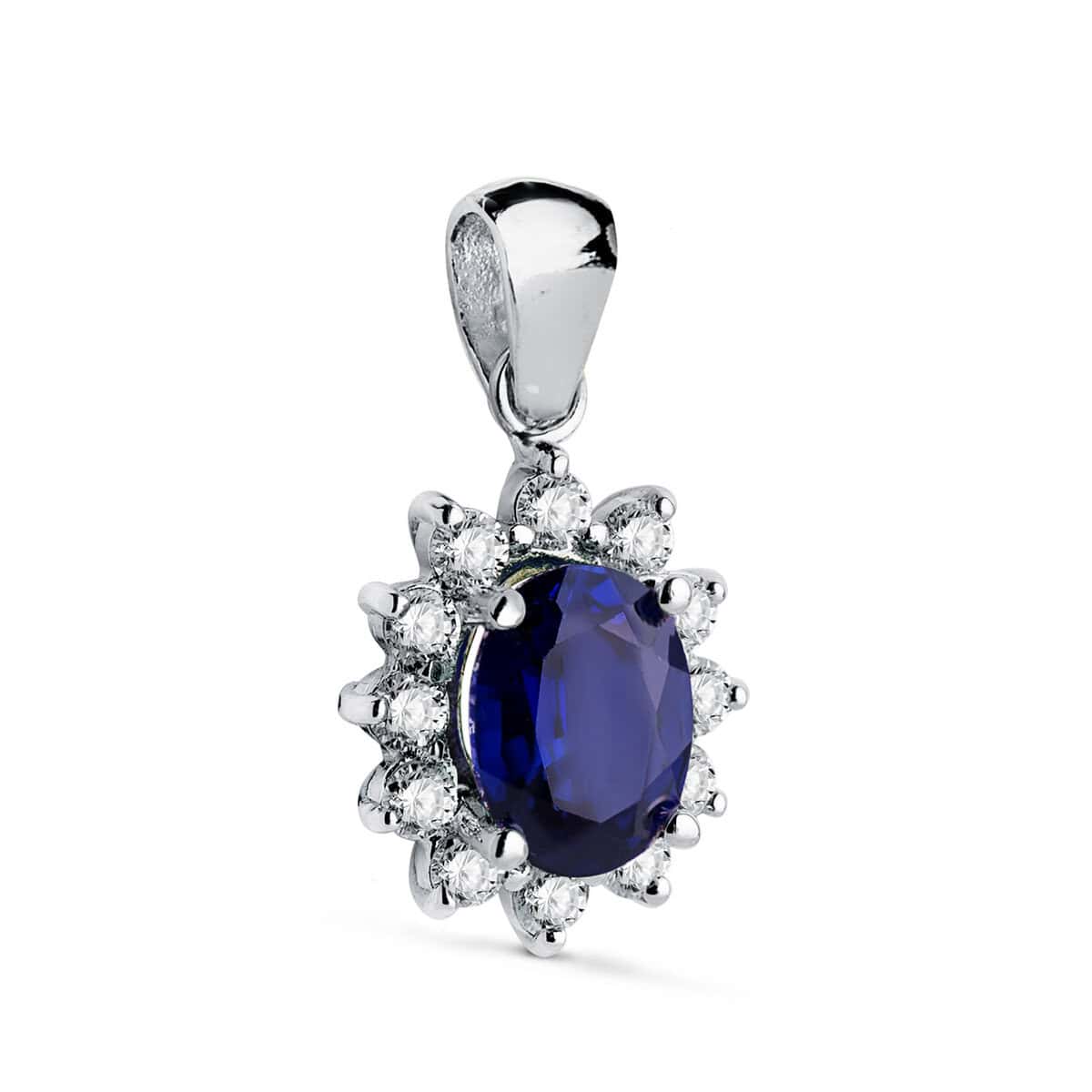 Colgante 11 x 9 mm Oro Blanco 18k Zafiro y Orla Diamantes 0,42 ct