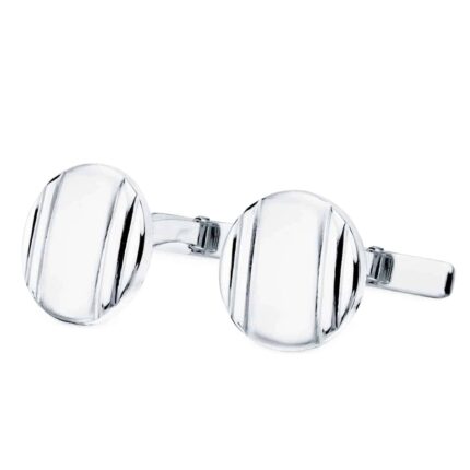 Gemelos Hombre Oro Blanco 18K 15mm Líneas Verticales Brillo