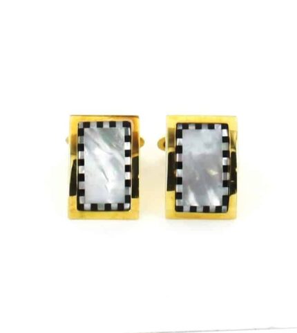 Gemelos con Nácar Blanca Curvada en Oro Amarillo 18K