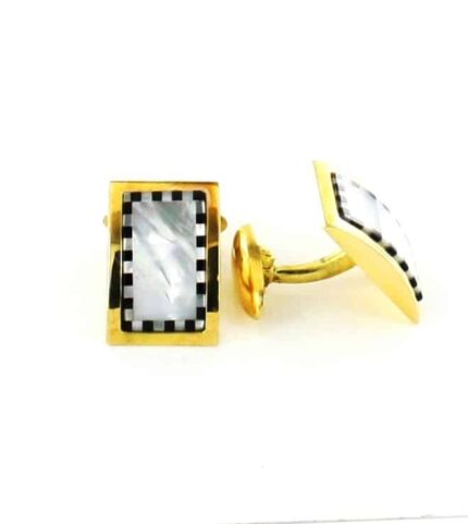 Gemelos de Oro Amarillo 18K con Onix y Greca Tallada