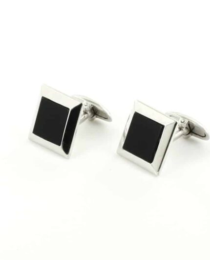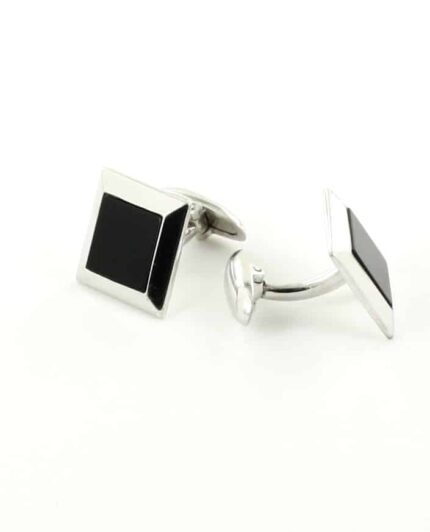 Gemelos Cuadrados 15 x 15 mm de Oro Blanco 18K con Onix