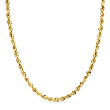 Elegante y clásico cordón Salomónico realizado en Oro amarillo 18 kilates. Cadena de 45 cm de longitud y 4 mm de grosor, que se convierte en una pieza de siempre y para siempre, perfecta para combinar con una medalla, colgante o cruz.