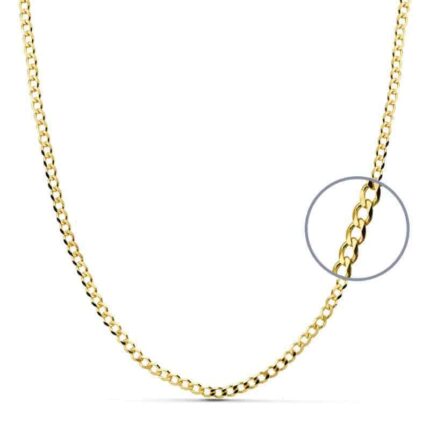 Cadena Barbada maciza realizada en Oro Amarillo de 18 quilates y 50 centímetros de longitud con 2 mm de grosor. Todo un clásico en la joyería, con diseño precioso en terminación brillo, perfecto para llevar a diario y combinar con una cruz, medalla o colgante.