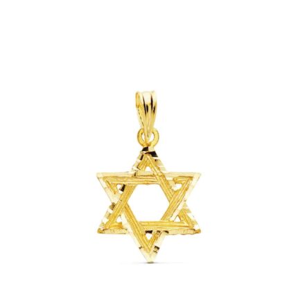 Colgante Estrella de David 15 x 14 mm en Oro Amarillo 18 Quilates Tallado Diamantado