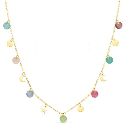 Gargantilla 45 cm Oro Amarillo 18 Quilates Chapas Color, Estrella y Luna