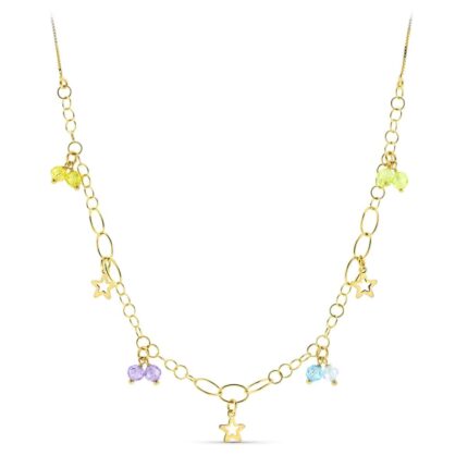 Gargantilla 45 cm Oro Amarillo 18 Quilates Chapas Color, Estrella y Luna