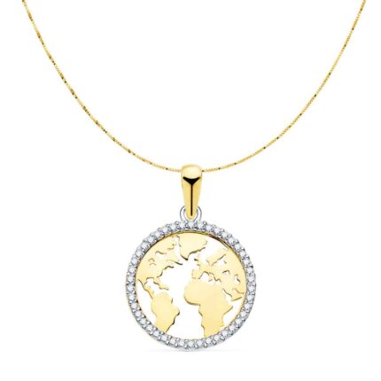 Gargantilla Mapa Mundo 16 mm Oro Bicolor 18 Quilates Circonitas