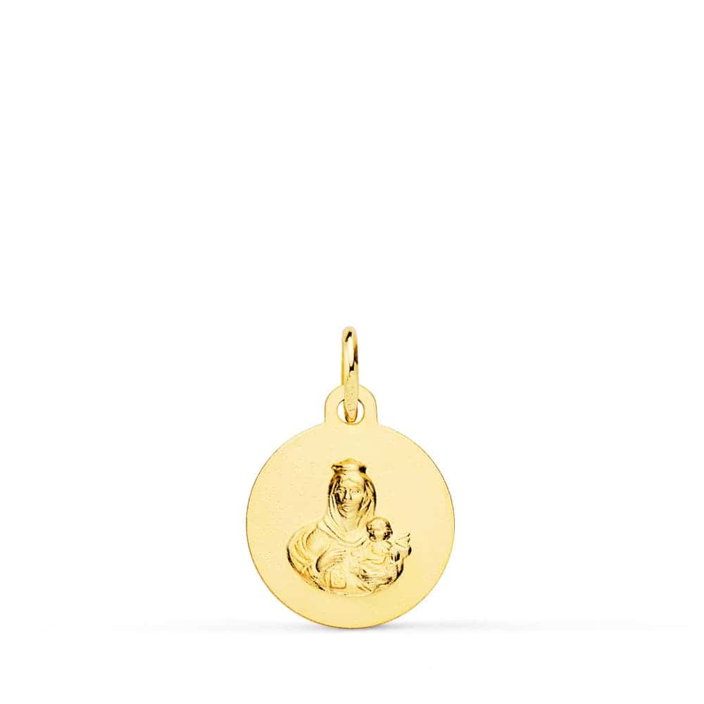 Medalla Virgen del Carmen 18 mm Oro Amarillo 18K con Brillo