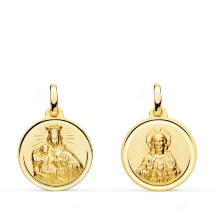 Medalla Corazón de Jesús – V. del Carmen de 16 mm en Oro Amarillo 18K Bisel
