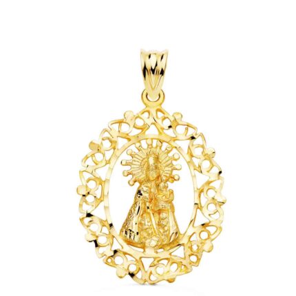 Medalla Virgen de los Desamparados 28 x 21 mm en Oro Amarillo 18K con Cerco Calado