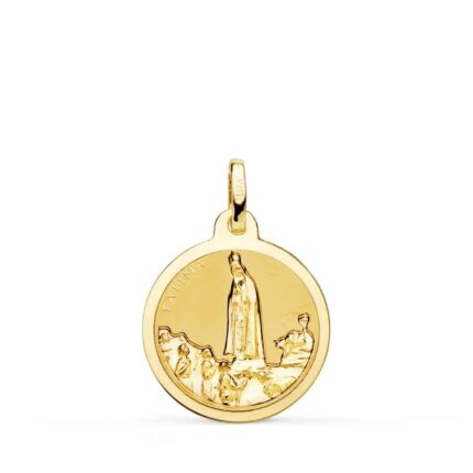 Medalla 18 mm Oro Amarillo 18K con Virgen de Fátima Borde Brillo