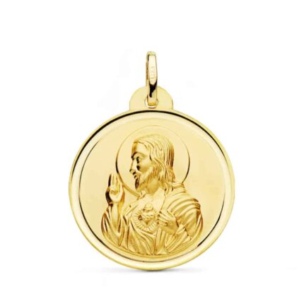 Medalla Sagrado Corazón de Jesús 20 mm Oro Amarillo 18K con Tallado