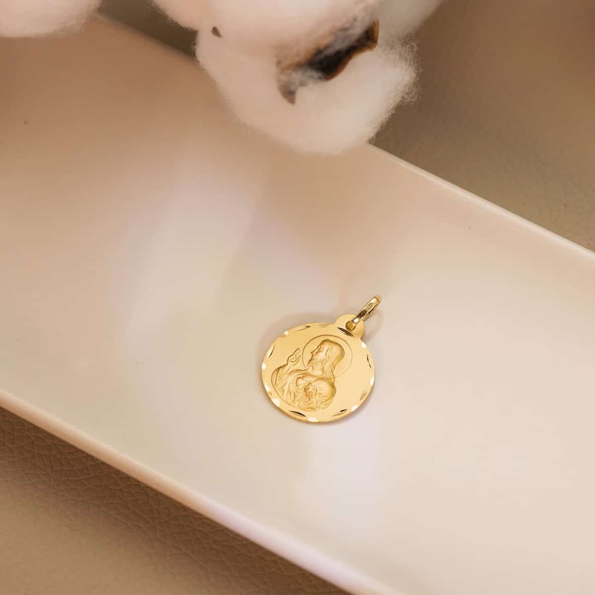 Medalla Sagrado Corazón de Jesús 22 mm Oro Amarillo 18K con Tallas Laterales