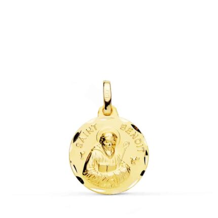 Medalla Saint Benoit 16 mm Oro Amarillo 18K con Tallas